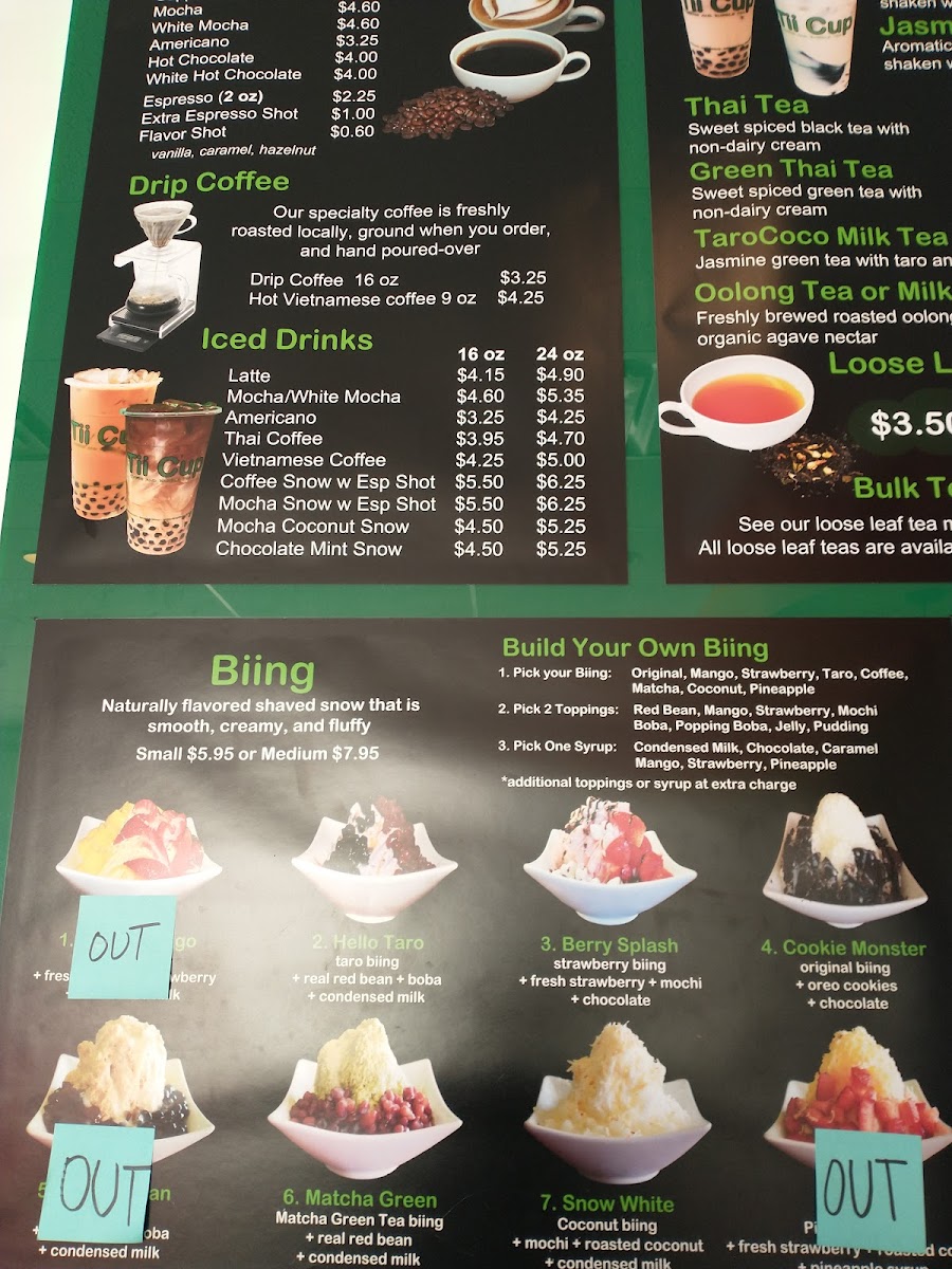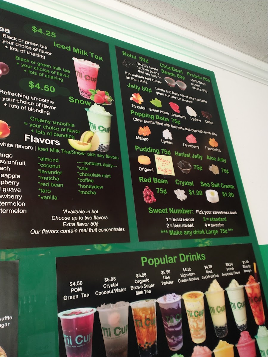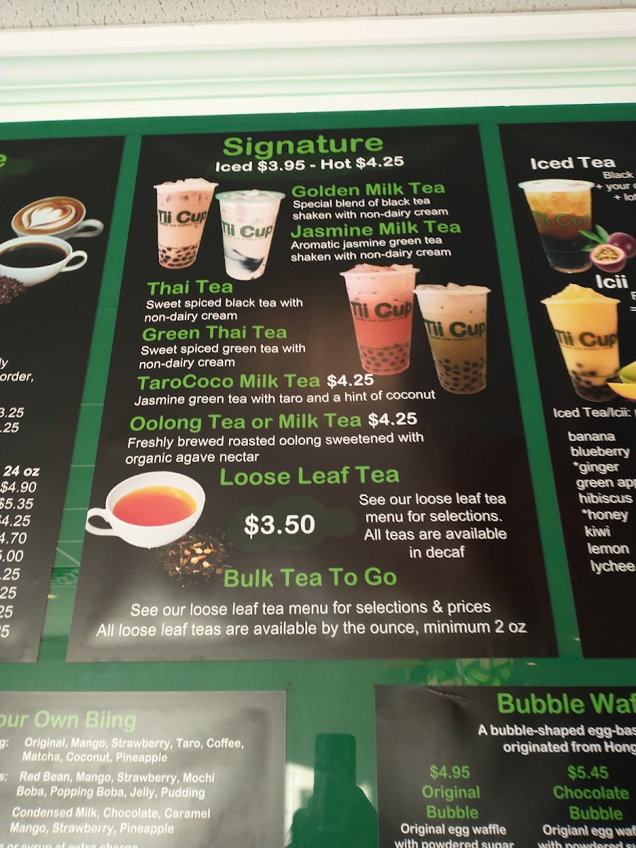 Espresso lovers will appreciate classic staples such as cappuccinos and lattes. Customers consistently praise the quality and flavor balance, especially noting the Coffee Bubble Tea for its smooth, satisfying taste that rivals other bubble tea spots. The inviting atmosphere, complemented by ample seating and even board games like chess, makes Tii Cup a perfect place to relax or catch up with friends.